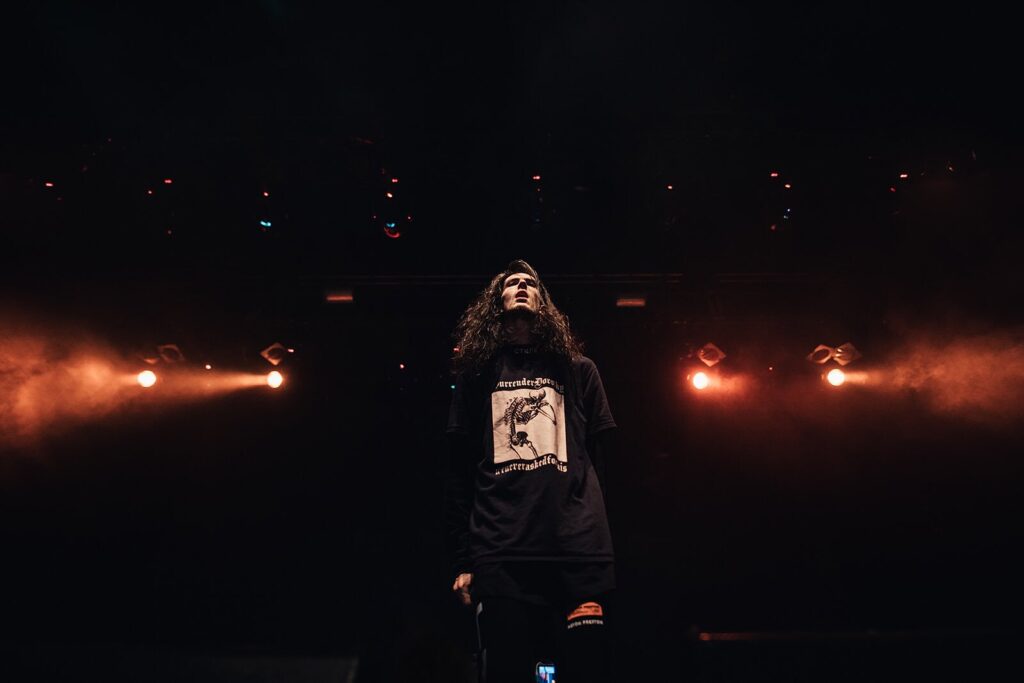 Z kolei taki trap oparty na zapętlonej melodii przepełnionych dramatyzmem, patosem i lukrem smyczków jak ten w „Ratatat” zapewne większość tutaj obecnych słyszała w swoim życiu co najmniej gazylion razy. Jednakże, powtórzę się, pieczęć Bonesowego flow w wielu przypadkach winduje jakość danego materiału na poziom ponadprzeciętny. Niekoniecznie innowacyjny czy wybitny, ale z pewnością interesujący. Moim zdaniem jednak to od utworu nr 6, „Peroxide”, zaczyna się „właściwa” część albumu, tj. wiązanka jego najmocniejszych momentów. „Peroxide”, o którym wspominałam już w drugim akapicie, to zdecydowanie kawał porządnego bangera. Natomiast lodowate synthy w „UncleRicksMonteCarlo” w połączeniu z tak esencjonalnie Bonesowymi wersami jak „Live fast, die young, the reaper got me booked for tomorrow” mają w sobie coś z upiornej groteski, tak charakterystycznej dla Bonesowego klimatu. W kolejnym na płycie „SwampOfSorrows” na baśniowym bicie legendy phonkowego podziemia, Rolanda Jonesa, Elmo sięga po kolejną ze swoich ulubionych „zabawek”. Albowiem tytułowe Bagno Smutków nie dość, że za sprawą samej nazwy idealnie koresponduje ze specyfiką Bonesowego smutku, to odnosi się do jednej z krain występujących w grze World of Warcraft. A nawiązania do gier komputerowych to kolejna ze specjalności Bonesowego zakładu. A że artysta wplata pomiędzy krajobrazy fantasy szydzenie z innych raperów, i to głównie poprzez szastanie terminem „pussy” (You act important, your raps poorly, I’m lashin’ on it / I follow you home, kick the doors in while you snorin’, pussy)? To w świecie Bonesa raczej chleb powszedni. Dalej w numerze nr 9, „MyOwnPersonalHell”, po raz kolejny swoim talentem do lirycznych bitów błyszczy Lyson, a sam Bones tekściarstwem, w którym klasycznie mieszają się potęgujące stany melancholii warunki atmosferyczne (Rain coming down fucking mobbing through the mud), uliczne porachunki (Snow camo Glock wet you-wet you like a flood), udręki emocjonalne (I’m just tryna bring some pain, I’m just tryna fucking feel), nieuchronność śmierci (Spinnin’ and spinnin’ around ’til it’s time to turn back into BONES) i stare dobre nawiązania do wrestlingu (Sharp shooter, Bret Hart, my missiles never missing bitch).